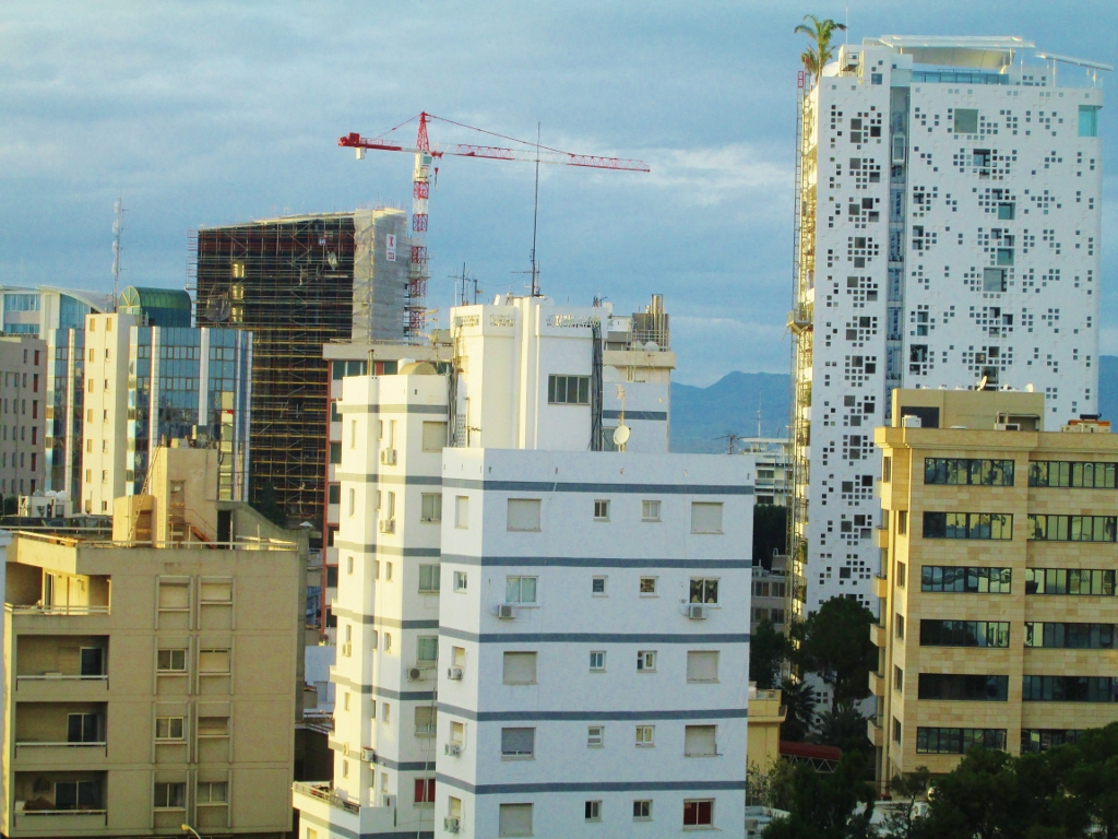 Nicosia skyline and skyscapers and high rises reflection during sunset Republic of Cyprus - wikimedia ![]()